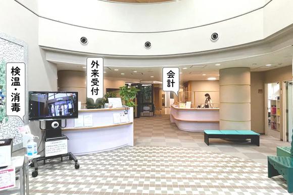 受診で来院の方々には、これまでと同様に入口で手指消毒と検温をお済ませいただき、外来受付へお越しください。
